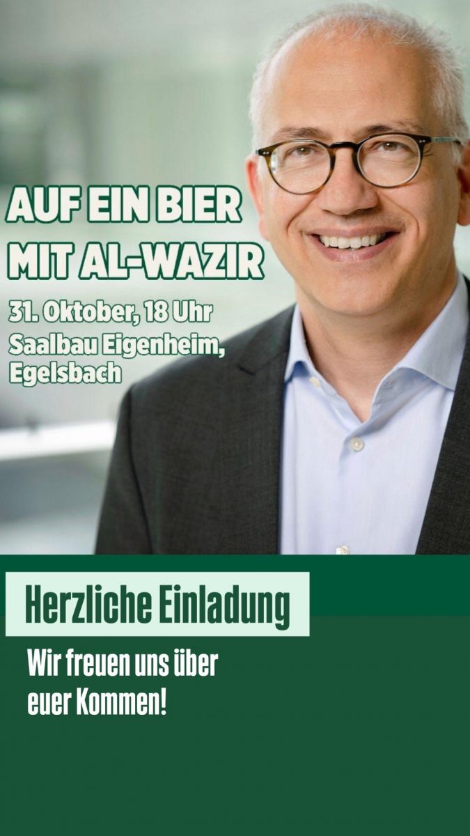 Am 31. Oktober besucht unser Bundestagsabgeordneter Tarek Al-Wazir Egelsbach. Getreu seinem Motto „Auf ein Bier mit Al-Wazir“ übernimmt er das erste Bier und berichtet, wie es ihm bislang in Berlin ergangen ist.